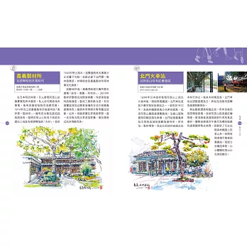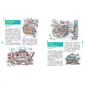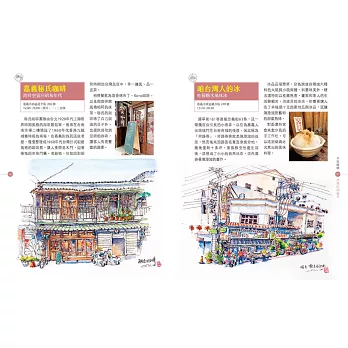 本書作者遍訪嘉義,以水彩速寫記錄這座城市的地景風貌,作品充分展現了溫柔明快的人文生活感。