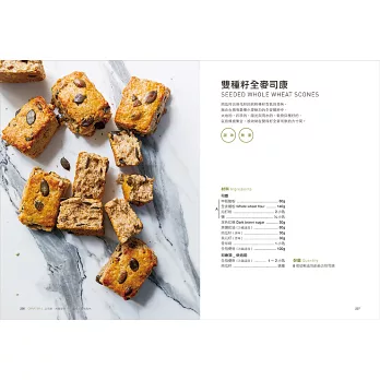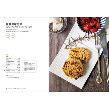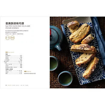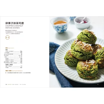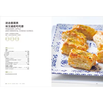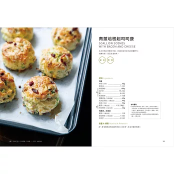 美好的司康,值得嚴陣以待。寶盒老師在本書中,將各類司康與食材的特性與影響、加入時間點、製程等鉅細靡遺寫出,例如,如何在添加水分含量高的蔬果時,應用冷凍果實與裹上麵粉的方法調節乾濕度;如何以平行收合麵團手法,保持司康應有的分明層次。多一點點,美味程度便大不相同。
