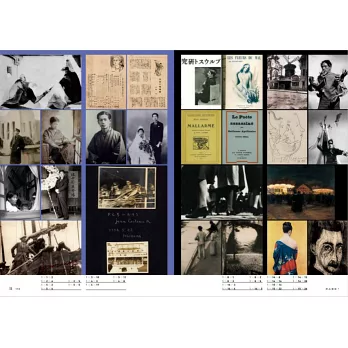除了上述內容,本書也收錄國立台灣美術館「共時的星叢:『風車詩社』與跨界域藝術時代」特展(2019 年6 月29 日~ 9 月15 日)的展覽圖錄、圖說於輯II;並特別規劃「跨媒介映射:歷史的回望與對話」於輯III,內有黃亞歷、孫松榮、巖谷國士三位策展人論述,以及部分展品的深度解說特稿。作為一個發生於2019年的展覽,它既是百年來台灣新文藝胎動萌生、發展、一度隱沒而終於復返的「結果」,同時也是許多台灣讀者(或美術館觀眾)藉以認識風車詩社及跨界域藝術時代的「起點」。由於兼具「結果」與「起點」的雙重性格,我們請設計師何佳興將之安排在左翻(=百年台灣藝文史)的末尾,同時也是右翻(=「共時的星叢」特展)的入口。如果你從展覽的入口進入,這本書的閱讀,就會成為一個由當代回溯歷史的過程。