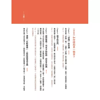 沒想到事隔多年後,展讀此書,讓我有一種說不出來的熟悉感,彷如一本「賺錢的超頻指導術」,讀完就能開啟自己的「賺錢模式」。