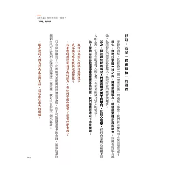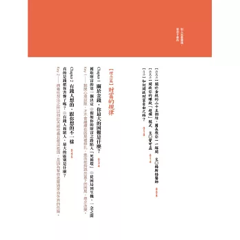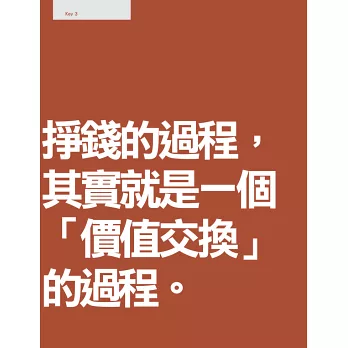本書用簡單的三個等級:「掙錢」、「賺錢」、「值錢」,一步一步教你解構「錢」的本質,讓你知道該如何重新建構自己的價值觀。