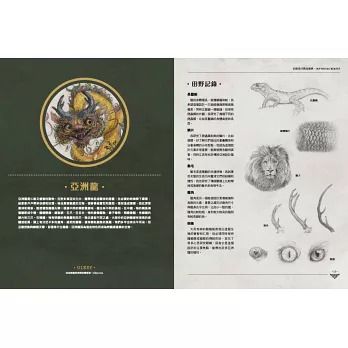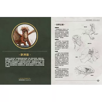 本書中一批高超的畫家們帶你走進幻想生物的世界──有些幻獸是你耳熟能詳的,某些也許是前所未聞。畫家們透過他們獨特的藝術家觀景窗將幻獸帶到你眼前,讓你看見他們從田野紀錄過程中的速寫草稿,一路到最後完成的作品。每一頭幻獸都以最初的神話或民間傳說分析為起點,畫家們將他們的設計概念以設計和藝術角度做細部拆解。他們深入考慮每頭幻獸的生活環境、行為、現實需要,進而發想檢討各種設計的可能性,直到找出最滿意的方案。概念設計發展完成後,畫家再帶領你循序找到最終的姿勢、構圖及最搶眼的表現手法,以期加強完成作品中的情緒和訊息深度。每一幅幻獸肖像的創作過程中處處可見各種繪畫技巧:描繪各種質感、抓住重量感和動作、將畫作能量向上推升。