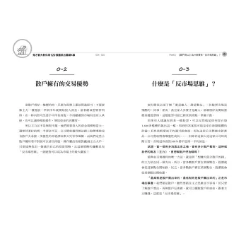 能夠在市場獲利的唯一方法,就是與主力站在同一個方向。然而,我們不是主力,要抓住主力思維並不容易,但我們都是散戶,只要了解散戶思維與散戶「反著做」,就可以擺脫散戶的宿命,這就是所謂的「反市場思維」。