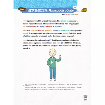作者特別依照主題設計實用又有趣的短篇會話,並請俄語母語人士錄製且會話為一個角色獨立一個音軌,幫助你快速熟悉標準的俄語發音,若下次遇到俄羅斯人,就可以有自信又自然地聊天了!