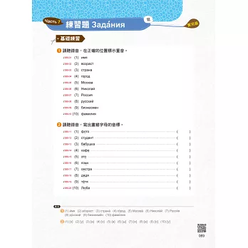 作者會根據前面學過的內容,設計幾組有助於讀者複習並提升實力的練習題,讓你即時測驗自己的俄語程度,學習不漏接!