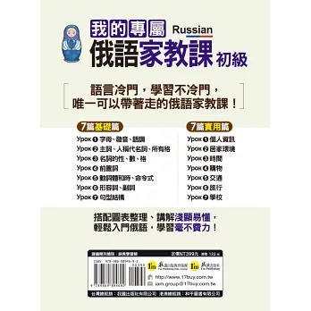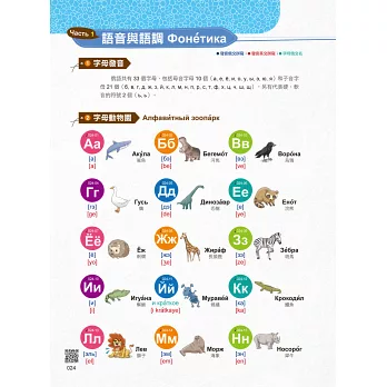 本篇介紹俄語33個字母A-Я(10個母音字母、21個子音字母、硬音符號ъ、軟音符號ь),以及用最清晰易懂的方式整理名詞六格變化、動詞體、形容詞等等,絕對降低初學者的學習門檻,並能快速掌握標準俄語發音。