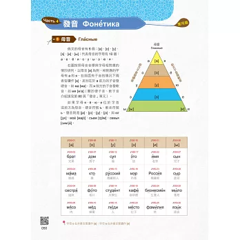2. 發音影片:利用手機掃描書頁上的QR Code,即可透過手機畫面學習標準俄語發音及嘴型。