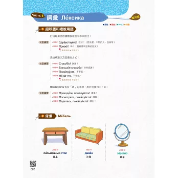 作者會根據當個主題延伸並整理出更多相關的實用詞彙,搭配趣味圖片學習,使印象更加深刻,你會的俄語詞彙就是比別人多!
