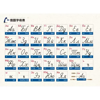 3. 字母拉頁:將俄語33個字母A-Я的印刷體、書寫體、拉丁轉寫整理成一張拉頁小海報,讓你拉開拉頁就可以複習全部的俄語字母,學習輕鬆又省時。