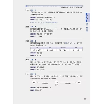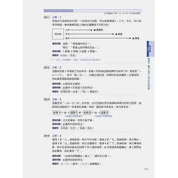 左頁「題目」、右頁「解析」,寫完題目馬上對,在對題目印象最深刻的時候對照學習,矯正錯誤觀念、吸收文法重點、加速學習效果,黃金時間就該花在刀口上。