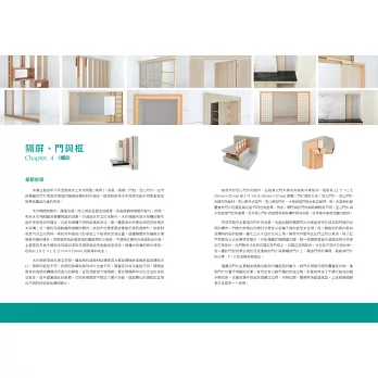 當然,構思、研究、繪製與付梓成書前,兩位學隸常常找我辯證與討論。人人身上一部經典,在專業價值與時代變遷穩住自我,找到永恆支撐點。在指導他們研究過程中,我關心、理解與體會,也樂於為此書撰寫薦文。 綜言之,他們「為裝修木作技術進行解決,為施工大樣圖解進行超越!」