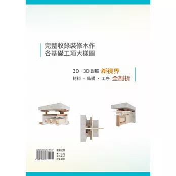 本書裝修木作基礎工程3D圖的建構,是以裝修木作施工大樣一書中的詳圖為範本,包含天花板、木地板、壁板、隔間、門與框並在附錄中將櫥櫃門片中西德鉸鏈使用的圖示一併呈現,使用壹佰柒拾多張詳圖加上立體現況、細節圖共約陸佰捌拾多張圖示,全部是木作基礎工程的細部結構,主要協助裝修木作與室內設計初學者對圖說與現況的理解,加快與業界接軌並增加自已的實務能力。然而,國內目前的室內設計學習環境,學、考、用落差一直是個難解的議題,三視圖中剖、詳圖的教育也因圖學上課時數逐漸淡化;在裝修木作施作技術上,因地域與工匠的操作習慣不同也有差異,書中內容僅個人經歷並依施作現況繪製,主要提供給學、業界做為參照實在無法周全,如需修正與建議,期教授、老師、前輩與先進們不吝指正,感謝!