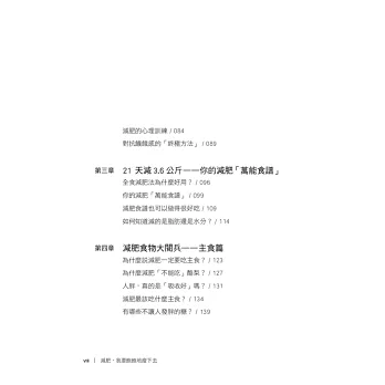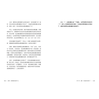 二、本書以大量國內外科學實驗資料為依據,分析了目前市面上流行的減肥方法,把它們的優勢、缺點、哪些體質的人可以用、哪些身體條件的人不建議使用,均清楚說明。