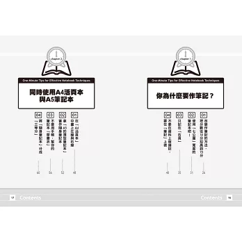若是用這種方法作筆記,就能以一頁一秒的速度來複習,這樣算起來,六十頁的筆記便能在「一分鐘」以內複習完。這就是我一直在提倡的「一分鐘筆記術」。