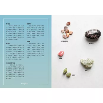 ◎100種水晶概述:提供常見水晶的「對應脈輪」、「基本屬性」、「療癒特質」、「保養方式」等知識,為你建立水晶收藏和儀式指引方向。