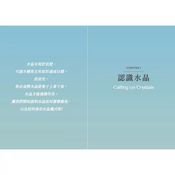 ◎60種儀式:從簡易到進階,圍繞「愛、財富、家庭、健康、世界」這五大核心特質,以水晶能量破除生活中的實質障礙。