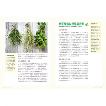 介紹生活中的香料、傳授如何自己種香草、進行乾燥、購買及保存的方法,以及新鮮與乾燥香料香草的使用注意事項。