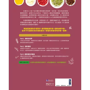 無論是廚房新手或熟手、香草種植愛好者、或精油製作者,這本不可或缺的百科絕對是你了解香料與香草時的唯一選擇。