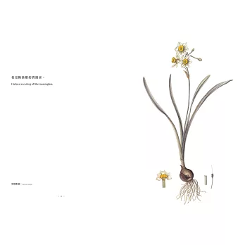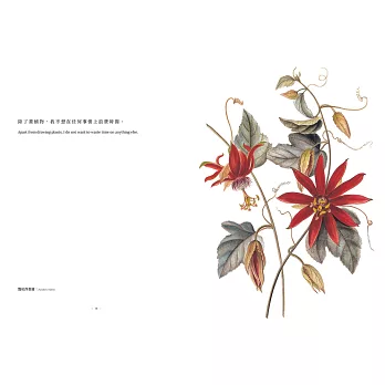 譬如,她會這麼說:「畫花,就是要有第三隻眼、第六隻眼。」又譬如:「人總是失去了,才覺得可惜。花總是謝了,才覺得還沒看淸。」由這句話引發了我們想到《植物情人》這個書名。