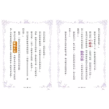 而此系列故事內容,除了顛覆經典童話以外,也結合了許多正向的主題,如﹝勇敢﹞、﹝解決問題﹞、﹝機智﹞、﹝互助﹞等,適宜的文字量,使孩子讀起來不覺得吃力,搭配上風格夢幻無比的封面與彩色插圖,更能吸引孩子目光進而主動閱讀,是非常適合幫助孩子提升語文能力的讀本。
