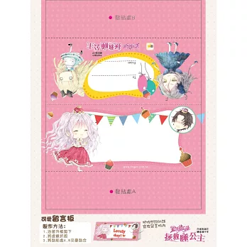 此外,除了《成語日記》,本書還另外搭贈了兩樣可愛贈品:《人物貼紙》與《留言板》,希望小讀者與媽媽們,在閱讀跟學習之餘,跟小編們一起少女心噴發(愛心),獲得更多樂趣。