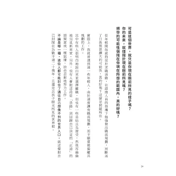 因此,我想在本書中達成的任務與Discover 21所出版的書籍一樣,都是要「改變觀點,改變(讀者的)明天」,而不同於過去的是,以往我一直是以編輯的身份協助作者達成該任務,但這次必須由我自己來達成此任務。