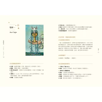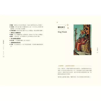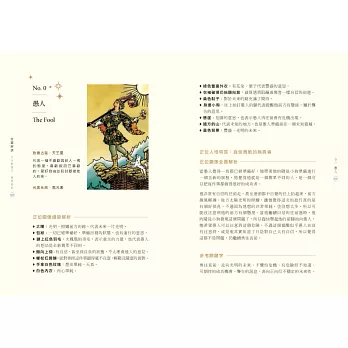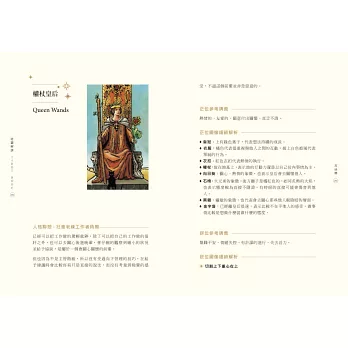 舉凡頭上裝飾、權杖、鞋子、身上穿著……作者擅長以簡單的一句話來強化每個細節的意涵,讓你輕鬆掌握圖像特點、人格特質。