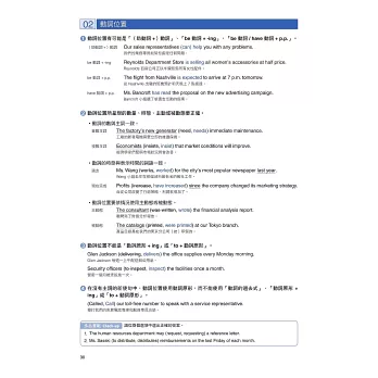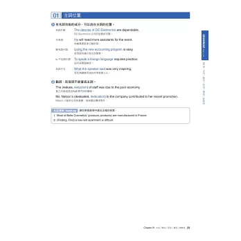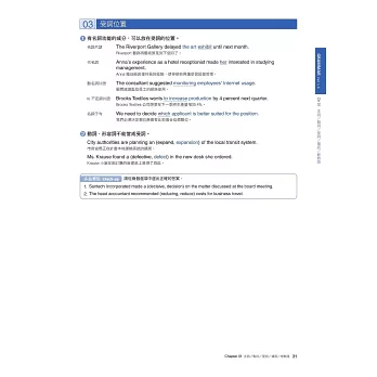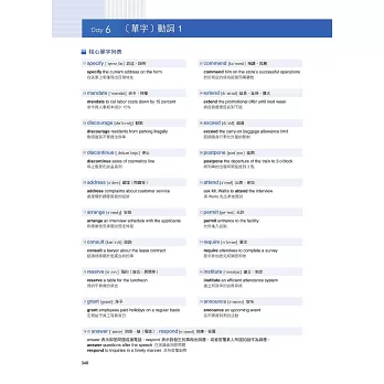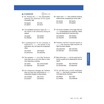 在本書最後整理了多益各Part中最常見的單字和表達方式,並依主題分成20天來練習,來加強考生的單字能力,對實際答題會有直接的幫助。