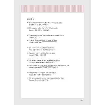 ◆ 提供「文法、閱讀、詞彙」三大領域的分類學習內容,幫助讀者找出自身弱點