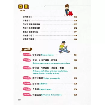 西班牙語是公認最好學的語言!只要從27個字母發音紮實地學起,接著熟記各類實用單字,最後學習各種生活中的常用句型及入門文法,便能打下良好的西語基礎。此外,使用清楚的表格呈現方式、搭配內文陰性、陽性標色,讓你在學習西語文法課程時,能夠一目了然,快速學會、學好!