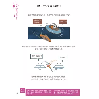 ◎地球可能曾有過一個名叫忒伊亞的姐妹行星、森林中的樹會互相幫助、雲是有重量的,而且還不輕、地球的自轉速度正逐漸變慢、月球的外形更像一顆雞蛋、水星是一個大金屬球、如果沒有木星,可能就沒有地球和人類、天王星和海王星上或許有數百萬克拉鑽石,你心動了嗎……