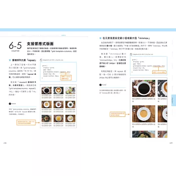 為了幫初學者進入狀況,本書的前三章會仔細地講解觀念,帶你學會必備的觀念和語法。第一章會說明網站是怎麼運作?設計網站的時候該做哪些事?接著再以兩章的篇幅,一個字一個字帶著你認識 HTML 和 CSS 原始碼。作者教的都是網站最常用的基本語法,並帶著你反覆練習,讓你慢慢熟悉寫法和規則、不再看到程式碼就恐懼。