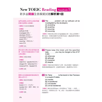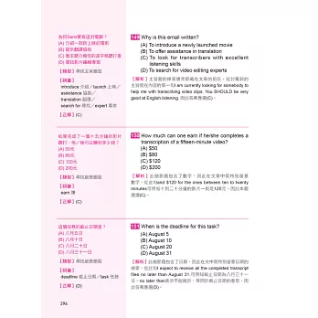 除翻譯以外,當然也有詳解說明,無論是單字、句型、文法、會話還是新增的圖表題目等等,都能藉由高手詳解,以最短速度找到破題的重點,並從中找到自己的弱點與缺失,進行改進,之後才能勇赴考場、毫不怯場!