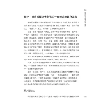 多年來,我運用《給演員與非演員的遊戲》的各種遊戲,做為社區劇場工作坊前期的破冰、表達、團體動力等重要工作的工具,藉此為社區居民建立安全、信任、共學的互動場域;也運用書中的練習活動,為社群團體(女性、教師、移工、輟學生…等)設計主題性的工作坊,用以討論議題、探索組織關係、預備倡議演出或教學方案的產出;我也使用書中的練習活動作為與學生互動的策略,融入過程戲劇(process drama)教案、教育劇場(¬eatre-in-Education)演出,達到促進議題教育目的。遊戲不只是遊戲,它已被應用在各式教育、組織、創作、對話、倡議的脈絡裡。更將書中的論壇劇場、形象劇場手法應用到我所創作的教育劇場和論壇劇場專業演出中,做為促進觀眾對話及行動的互動策略。
