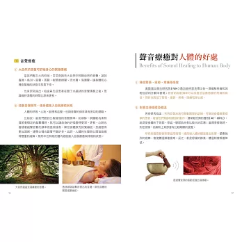 聲音療癒藉由敲擊聲音器具產生「聲音」及「波動」,帶動人體產生共振,讓你有被療癒的感覺,書中將說明原理及應用範圍,帶你一探聲音療癒的秘密。