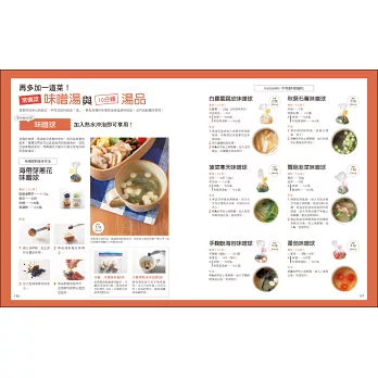 本書囊括雞豬牛等肉類,還有海鮮、各色蔬菜、蛋、豆製品,以各種在超市、菜市場容易採買的食材,利用不同搭配組合和調味,變化出上百種口味。不論做熱便當還是冷便當都好吃,還可以自製現沖現泡的味噌球,餐餐不重複,天天吃都吃不膩!