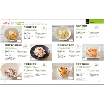 書中食譜以「一人份」設定,每一餐吃多少、需要多少食材一目了然!每道菜都有詳細的材料、保存、加熱方式、含醣量、熱量完整說明,從備餐到組合都一氣呵成!讓你不論是為自己還是全家人備餐,都能夠自由調整、方便準備!還可以依據不同情況的醣量需求增減配菜。
