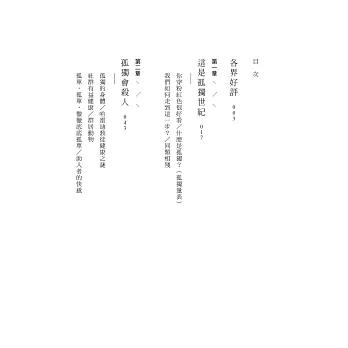 極具原創力、說服力和啟發力,《孤獨世紀》既是指標之作,也充滿閱讀樂趣。只要你想搞懂我們這個錯綜複的時代,並釐清我們在朝哪個方向前進,這本書都是必讀。它注定要成為經典,我再怎麼強力推薦都嫌不夠。