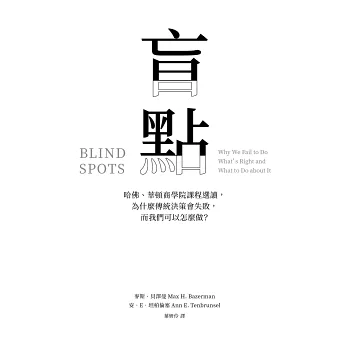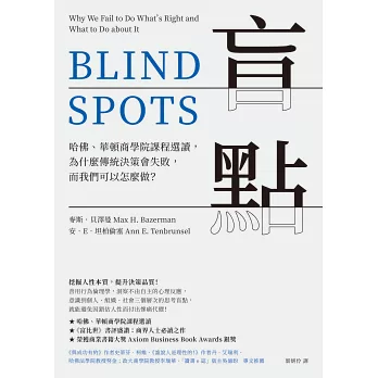 這本哈佛商學院、華頓商學院課程選讀書籍,是由曾出席美國聽證會作證討論審計獨立性的哈佛大學商學院教授麥斯‧貝澤曼和商業倫理專家安‧E‧坦柏倫塞所撰寫。兩位作者指出,許多傳統的決策方式,是出於對人性的錯誤理解或不夠理解,導致流於形式或顧此失彼。而提升決策品質的第一步,就是察覺人在理想目標與實際行為之間的落差,是出於不由自主的心理反應。唯有意識到我們必然會有的盲點,才能跳脫有限卻往往不自知的思考框架,看清重要資訊,做出精準判斷。