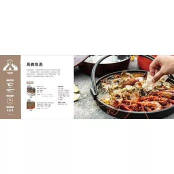 寶島台灣四面環海、風和日麗,擁有許多富饒的山海產。本書中收錄許多Max主廚走遍台灣,運用當地特產發想出的料理,苗栗水梨雞湯、新社菇菇炊飯、日月潭水煮魚……只要在抵達營地前順道購買在地盛產食材,不用多餘調味,就是完美發揮食材特質的驚豔台灣味。