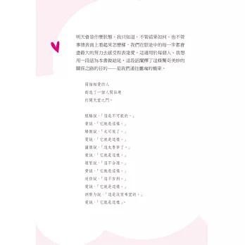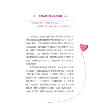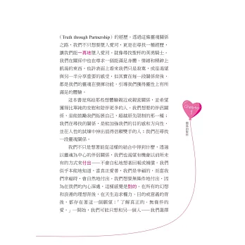 所以我寫了這本書。我在 1989 年開始寫,一年後覺得內容已經很完整了。然而,直到 2016 年和超過十二次的重寫後(和我兒子哈蒙的優秀編輯能力),才真正覺得我寫的是一本實際的、誠實的、實用,並不失一些幽默感的書。我希望這本書能讓你微笑,幫助你看到你在目前和在未來關係中的目的和潛力。