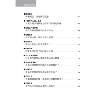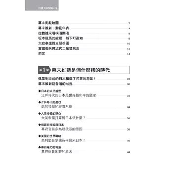 本書宏觀掌握幕末維新的全貌,並著重事件背後成因、代表人物與各藩實力等介紹,帶領讀者從多重角度了解,體會這個激烈的時代。