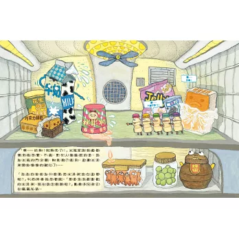 故事中出現各式各樣日常生活中熟悉的食物,對於每種食物的認知,從外觀到味道的特性,例如:餅乾的外觀是堅硬的,所以故事中才能夠像城牆般圍堵遇熱就會融化的冰淇淋……這些細節都值得親子一起討論分享共讀的樂趣。