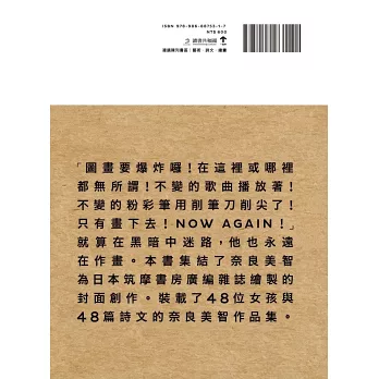 本書集結了奈良美智一次非常特別的創作嘗試──為日本筑摩書房的廣編雜誌繪製的封面。一般日本雜誌的封面大多是偶像明星,用插圖當封面相當少見,奈良美智於是答應接下這項連載邀約。