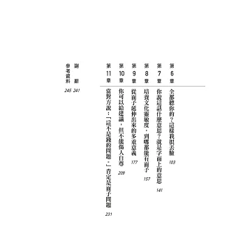 本書的開頭梳理「面子」,內含千絲萬縷的尊重、人情、情商、同理心等,跨國文化培植出多元脈絡。當美國籍的女主管在處理公務上,遇到韓國籍的男性主管說出具有性暗示的諧音詞彙時,應該如何應對?中國工廠不肯按照美國公司的設計藍圖製作的原因為何?出生於臺灣、移民美國多年的作者,清楚解析跨國事業的實戰守則。