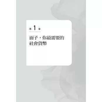 這只是作者在書中娓娓闡述的其中一個有趣的觀念,她還提供建議,教我們如何善加管理面子,藉此與人打交道,創造並維持良好的人際關係。