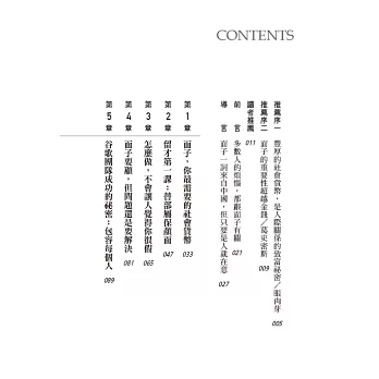 我們該如何與別人交往、如何創造良好的第一印象,讓自己顏面有光?我們該如何避免在商場或社交情境中,不經意間害別人丟面子?最重要的是,我們如何有效保住面子,避免不良的後果?本書都會教你。