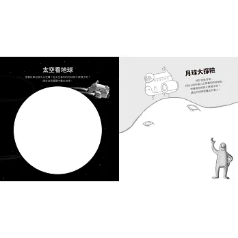 ★阿波羅11號登月五十週年紀念話題之作:人類第一次登陸月球至今已五十年,從此開啟人們對太空旅行的夢想,或許有一天搭校車就可以上月球探索!從月球看地球是什麼風景?在月球上會遇到外星人嗎?打開孩子對外太空的好奇心,種下科學的種子。