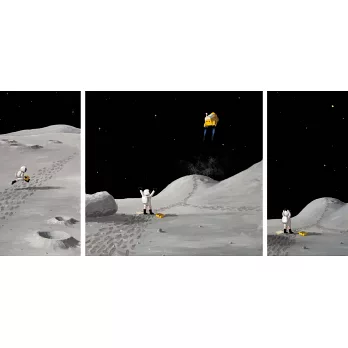 搭著太空校車,朝月球前進。漫步月球表面,在月球上拍照、寫生,聽著老師的導覽。