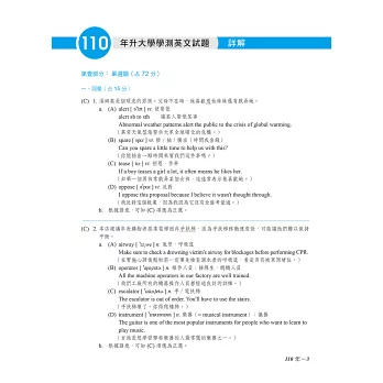 b.精譯試題內容,輔以精確的解析,並列出『必考重點』、『重要單字』、『重要片語』等項目,讓讀者作答及複習時,一目了然,掌握命題相關重點。
